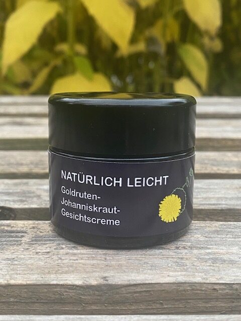 Ausgewählte Wirkstoffe/Inhaltsstoffe: Goldrutenhydrolat**, Johanniskrautkokosölmazerat*, Jojobaöl*, Bienenwachs*, Vitamin E natürlich